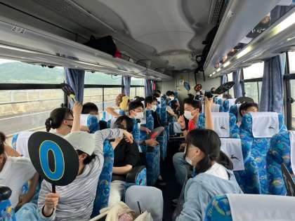 それぞれのクラスのバスが,今晩泊まるホテルまで移動しています。