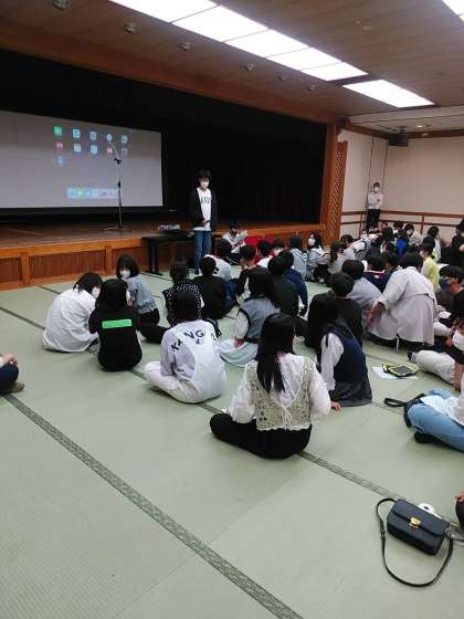 いよいよレクリェーションが始まります。まずは今日一日の各クラスの道中で撮った「映え写真」コンテストです。