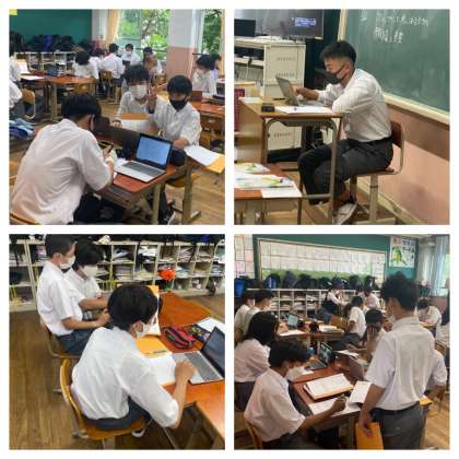 図書室の学校司書さんにも協力いただき図書館も開館しており、必要な書籍を探しに来ている人たちもいました。