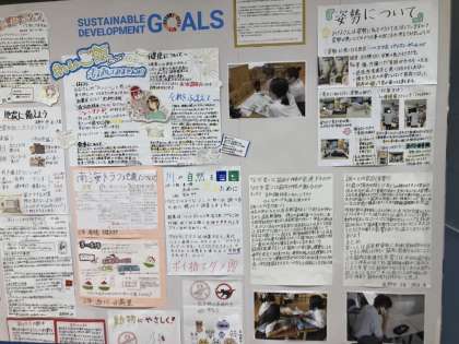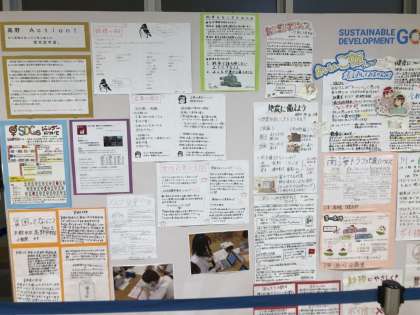 総合学習の時間を使って調べたり話し合って、ポスターにまとめた人たちの作品を「洛北阪急スクエア」の方が丁寧に掲示してくださっています。
