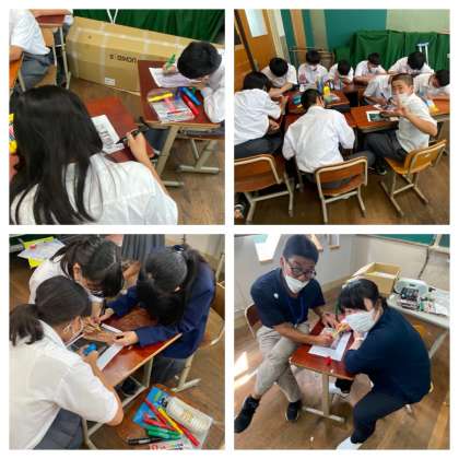 点描画を作成しているグループは、とても集中して取り組んでいます。