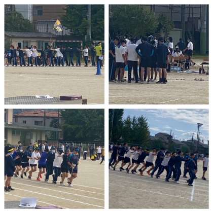 三年生はどのクラスも早くからでてきて、午後からの団体種目である「一歩団結」の練習を行っていました。