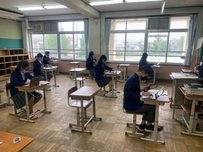 4月18日に行われた全国学力調査(国語・数学・英語)にひきつづき、4月25日に「話すこと(英語)」の調査が行われました。