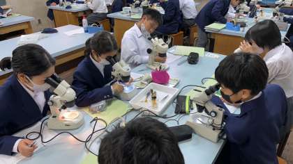 1年生の理科では、顕微鏡の使い方とともに、校内にたくさん咲く花を顕微鏡でみて、花のしくみを探っています!