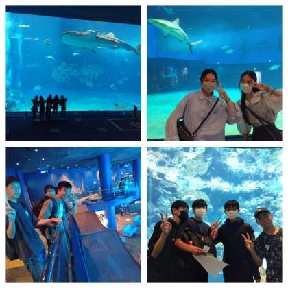 美ら海水族館で美しい沖縄の海と自然を満喫しています。