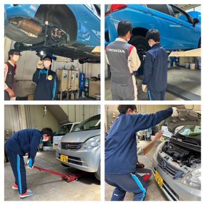 タイヤ交換、車の点検などさまざまな作業を教えいただいています。