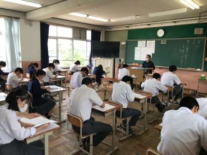 昨年度まではこの時期に定期テストを設けていましたが、今年度は、単元テスト週間と名付け、1限に40分間、各教科の単元テストを行い、2限からは授業を行なっています。