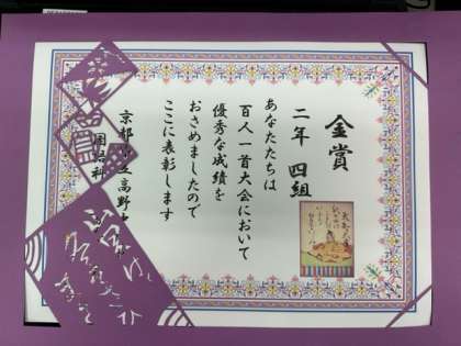 2年4組が学年優勝をし,手作りの素晴らしい賞状をいただきました。