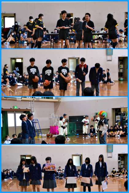 暗号をもとに,1年生が閉じ込められた体育館のカギを見つけ,1年生を体育館から脱出させるというストーリー仕立てがされており,そのストーリーが進む中で,生徒会活動の紹介等が行われました。