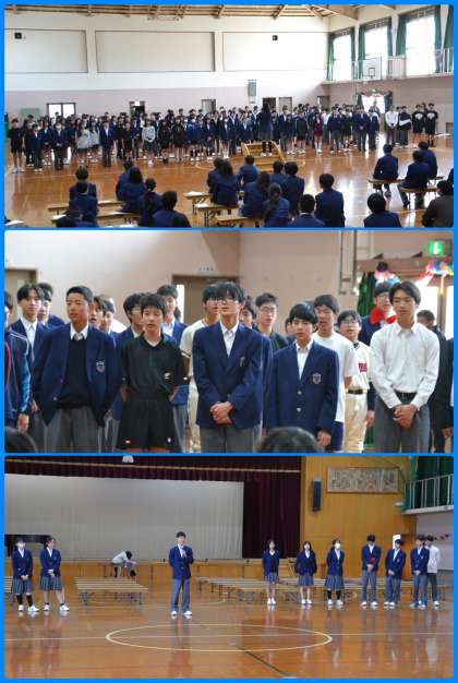 1年生が退場した後に,生徒会長から2〜3年生に感謝の言葉が述べられたことにも感動しました。生徒会本部の皆さん,準備大変だったと思いますが,和やかな良い迎える会でした。お疲れさまでした。そして,ありがとう。