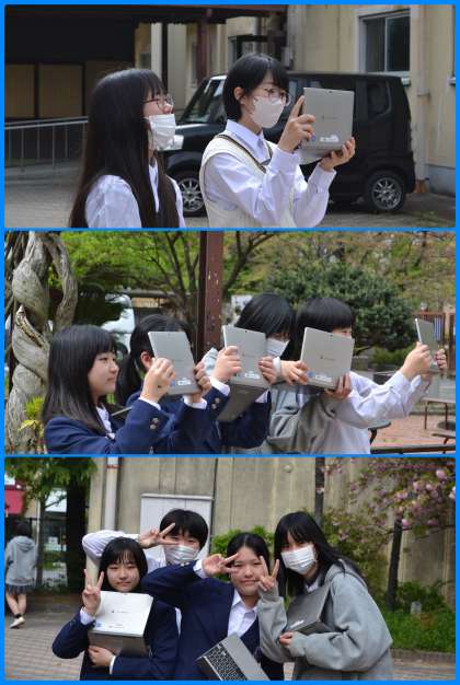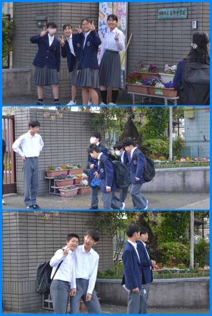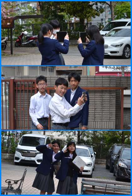 1時間目にギガ端末を持って何やら撮影をしているクラスがありました。話を聞いてみると美術の時間だとのこと。撮影したものを基に絵を描いたりするのでしょうか。何が創られるのか楽しみです。