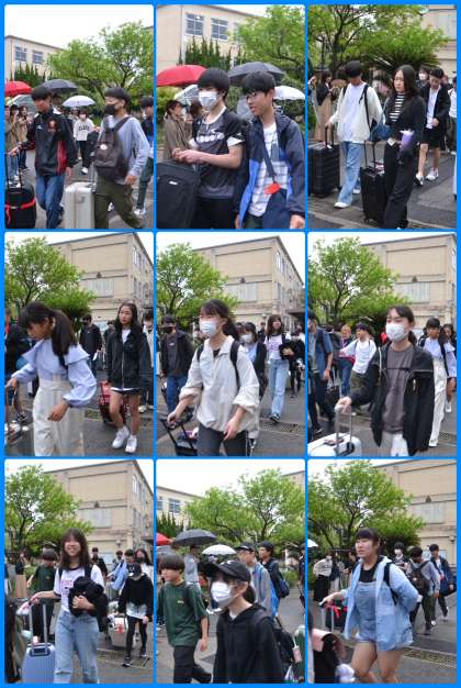 引き続き出発式の様子とバスに向かうところの様子です。