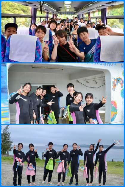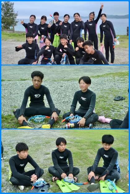 シュノーケル、泥染、塩作り組も出発です。私はシュノーケル組に同行します。
