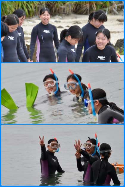 歓声(いや,悲鳴?)をあげながら,海に入っていきます。すぐに,「気持ちいい〜」との声が響きました。