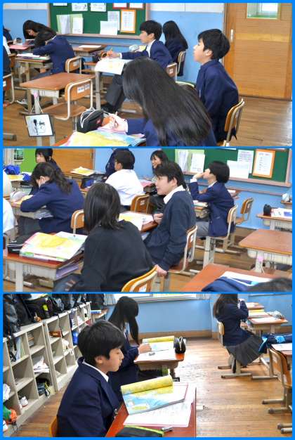 2年生の授業も覗いてみました。2組が社会,3組が国語でした。4組は体育か何かで,教室での授業ではなく,写真が撮れませんでした。すみません。