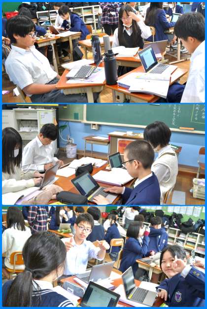国語は,「令和版 枕草子を創ろう」といった内容をGIGA端末を用いて,時に調べたり、浮かんだ言葉をロイロノートに打ち込んだりといった活動が展開されていました。