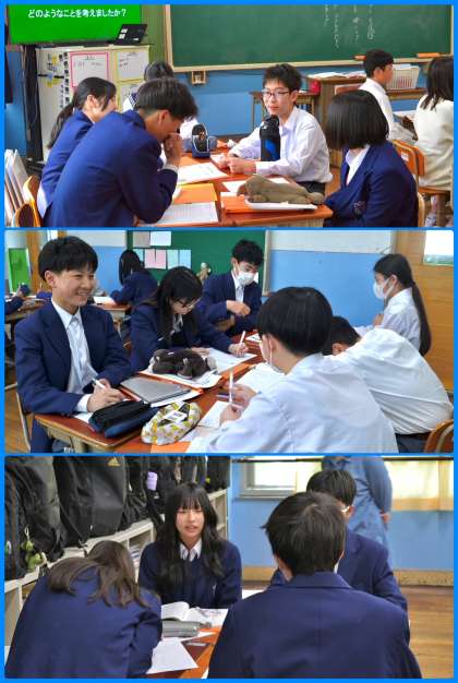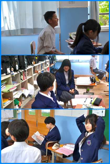 木曜日の4時間目はどの学年も道徳です。今日の2年生の授業は、部活動をやめた後、ジャズダンスに出会い、自分の中の何かが変化したという生徒の話を題材として取り上げ、「自分らしさ」について考え、意見を交わすといった内容でした。