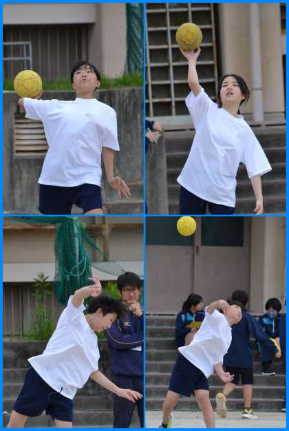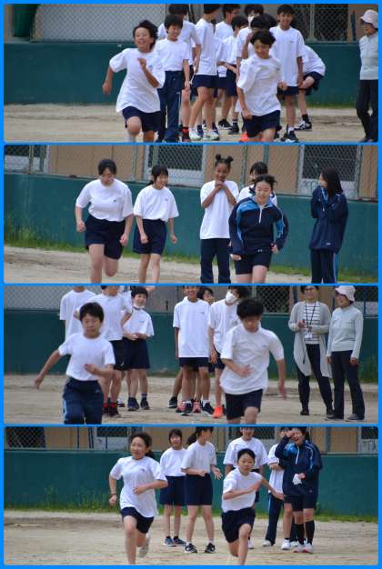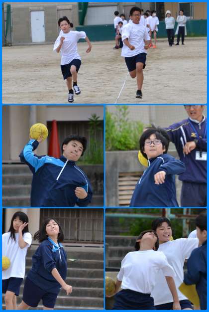 グランドに何気なく目を向けると、体育の時間冒頭の補強運動が行われていたので、様子をカメラに収めようと、グランドに出てみました。体力テストの50m走とハンドボール投げの様子です。50m走は小学校でもこの時期に行ったと思いますが、1年前の自分より速くなったかな?