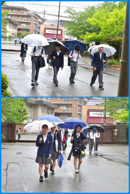 雨の1週間の始まりになりました。月曜だからか、雨のせいか、少し元気がないように見える生徒もいます。