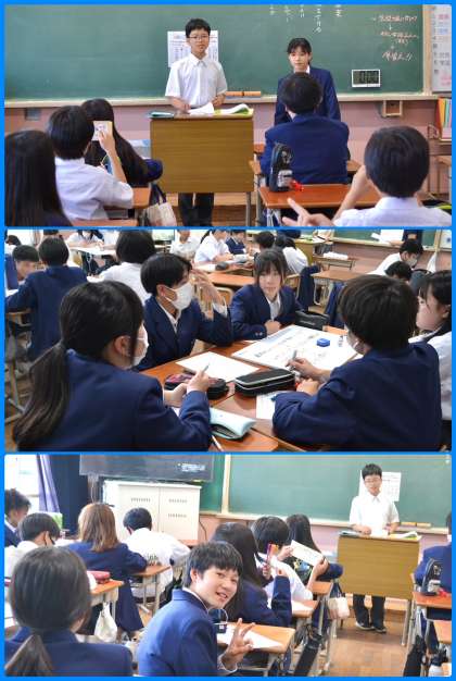 今日の6時間目はどの学年も学活でした。1年生は生徒大会に向け,クラスをより良くするためのアイディアを出し合っていました。班でアイディアを出し合った後、それを全体に発表するという形で進められていました。
