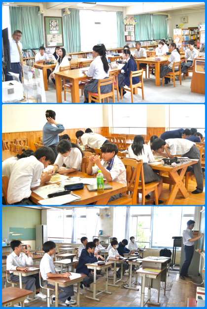 3年生は、5・6時間目に6つの高校から先生方をお招きし,高校の授業を体験する時間をもちました。洛陽総合高校・京都両洋高校・大谷高校・北稜高校・鴨沂高校・洛北高校の先生方による授業をそれぞれが2つ選択し,受講しました。