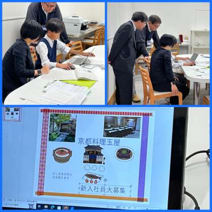 1組では,「京料理上賀茂玉屋」さんの社員募集のポスターを作成しています。