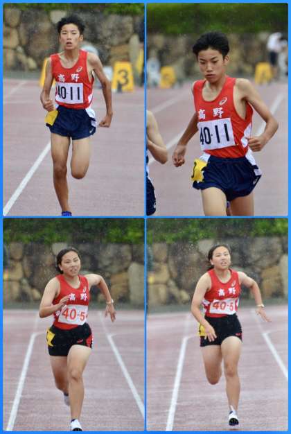 続いて、男子1年100m、男子2年100m、女子4種競技200m、1年男子800mです。1年生にとっては初めての大会。あいにくの雨となりましたが、何事も経験。今後に生かしてくれたらと思います。
