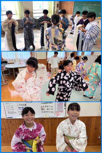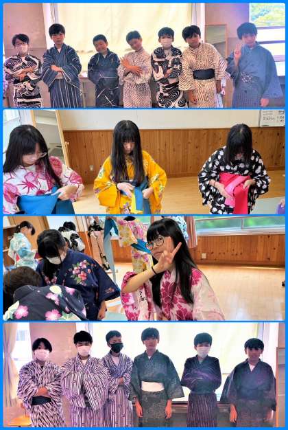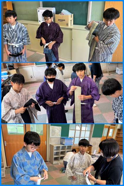 7月16日(火)、1年生は和装教室を実施しました。家庭科の授業において外部から先生をお迎えし、浴衣の着方等を学びました。ここでも「伝統と文化を受け継ぐ」ことを企図した取組を展開しています。