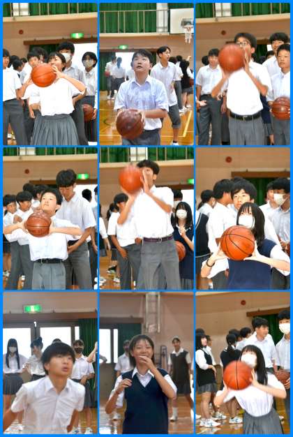 本日の2時間目、2年生の学年集会が行われました。1学期の振り返りの後、学級対抗レクレーション「全員フリースロー大会」で盛り上がりました。