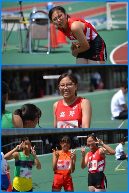 四種競技Yさんの最後の種目200m。出し切って終えて欲しいところでしたので、走り終えた後、こちらに満面の笑顔を向けてくれた時にはこちらもとても嬉しくなりました。さらに、一緒に競った他校の選手も巻き込んでこちらに向けてピースサインを送ってもくれました。