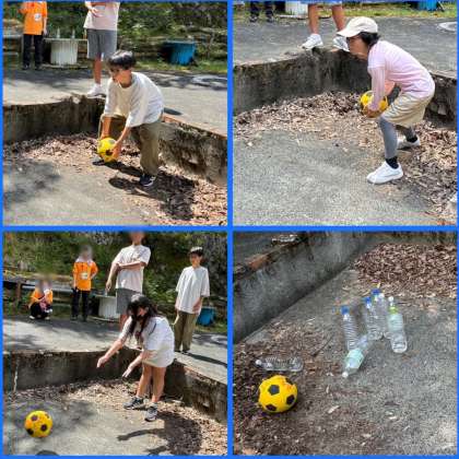 クイズと絵しりとりと,ペットボトルボーリングに取り組みました。