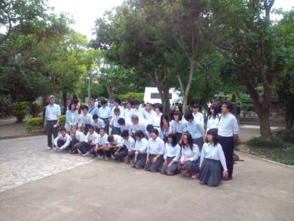 バスで「ひめゆり平和祈念資料館」に移動し、クラスごとに学習を行いました。終了後、記念撮影。次は「平和セレモニー」が予定されています。