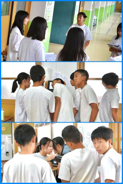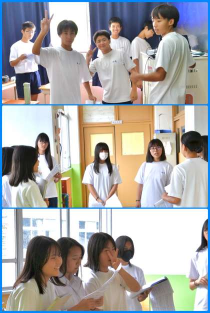 取組の時間。今日はまず、南校舎3階に上がってみました。パート練習に熱が入っていたのが3-4。プレーヤーに耳を近づけて音取りをしているパートもありました。まず音をしっかり取る…基本ですね。パート練習もさすが3年生といった感じです。