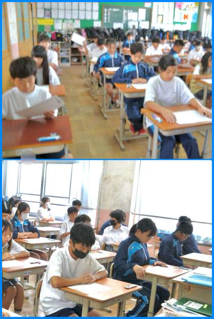 本日の1時間目から5時間目までは3学年とも学習確認プログラムの確認テストが行われています。