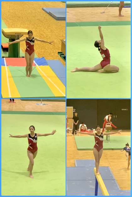 ゆか、段違い平行棒、平均台、跳馬の4種目。力強くそして華麗な演技を見せていました。