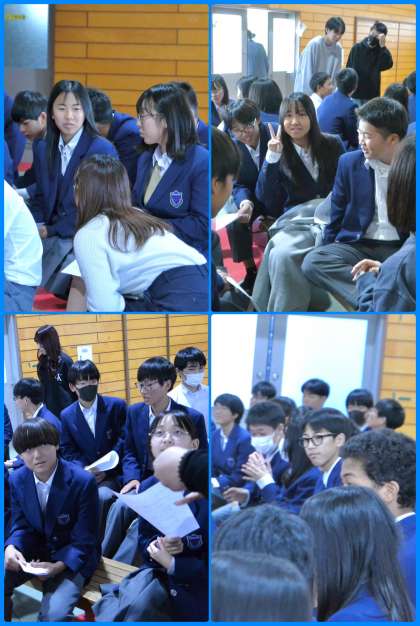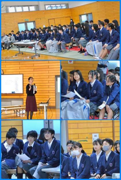 3年生は東京の文教大学から孫美幸先生と国際学部の学生さん達をお招きし、多文化共生をテーマにした学習をしました。学生さんは年齢が近いこともあり中学生が興味を持ちそうな内容を準備していただいたようですね。