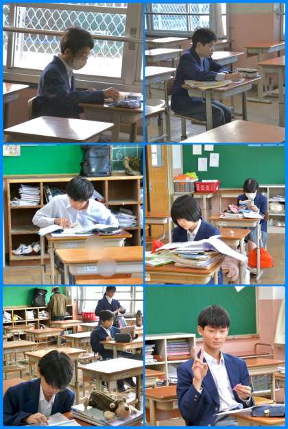 8時過ぎの教室。テストに向けて勉強している生徒。8時20分、校門。ノートなどを手に勉強しながらの登校。テスト当日の恒例の光景。努力すれば必ずいい結果がついてくるとは限らないけれど、自分が満足できる結果を残している人たちは皆努力している。頑張れ高中生!