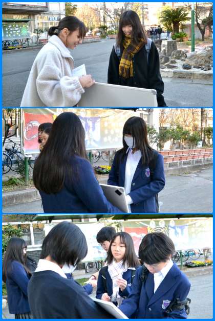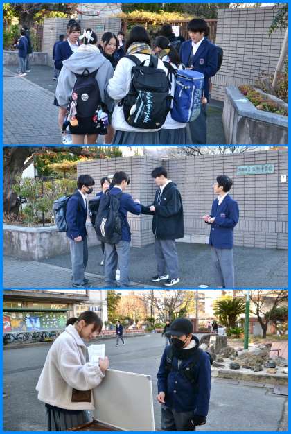 新生徒会本部も、水曜日の朝の挨拶運動において、高中ラジオで流して欲しい曲を3つの選択肢から選んでシールを貼る取組を前本部から引き継いで行っています。今日のお題は「クリスマスソングと言えば…。」お昼に流れたのはバックナンバーの「クリスマスソング」でした。もちろん私も一票入れた曲です。