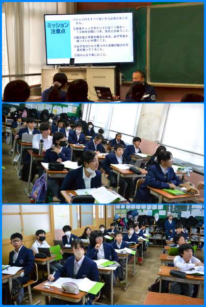 1年生は金曜日に校外学習を行います。班別で市内を巡る学習です。今日の6限の学活ではその事前の学習が行われていました。