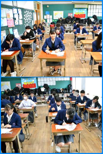1・2年生は、今日、学習確認プログラムの確認テストを行っています。5教科を1日で行うので大変ですが、うまく集中力を保ってほしいところです。粘り強さを発揮してくれることを願っています。写真は2年生の国語開始直前直後に撮影したものです。