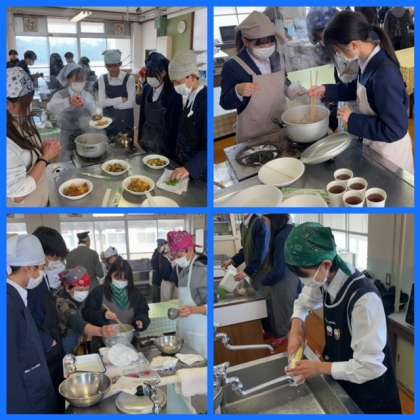 2年生の家庭科では,本日全クラスで調理実習を行いました。