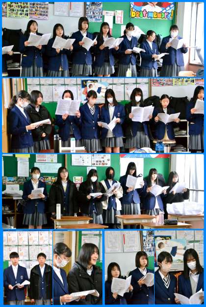 学年末テストを終え1・2年生は午前中で下校し、3年生だけとなった午後の授業。3階からは歌声が聴こえてきました。送る会、または卒業式で歌う歌なのでしょうか。みんなよく声が出ていました。「この3年生だからこそ、この声が出るんだ」とあらためて感心したところです。