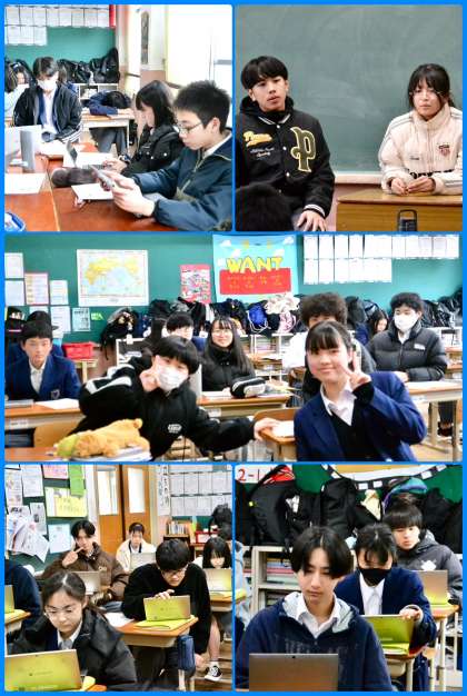 6限の学活の様子です。2組は委員会活動の報告、3組は修学旅行の取組、4組は端末を使ってアンケートに答えているところでした。学年末ですので、学活ですべきことがたくさんあります。