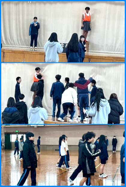 2年生は3〜4限に球技大会を行いました。こちらも、球技大会と言っても球技の写真が全くなく、「だるまさんが転んだ」とクラス対抗シンキングリレー(クイズリレー)の写真のみとなってしまいました。