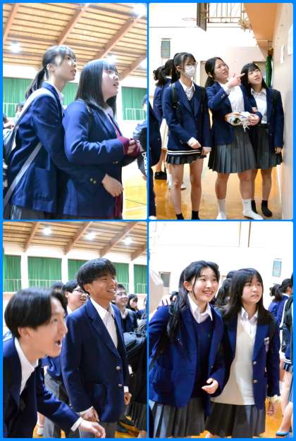 本日より、令和7年度がスタートしました。着任式、始業式に先立ち、新クラスが掲示され、自分のクラスを確認している時の様子です。