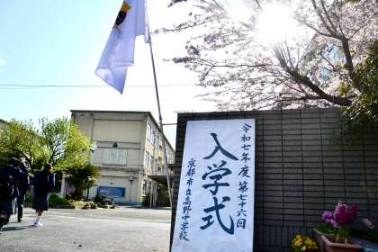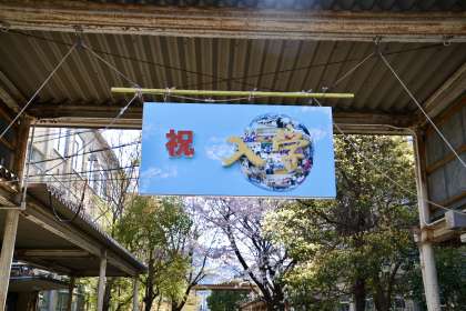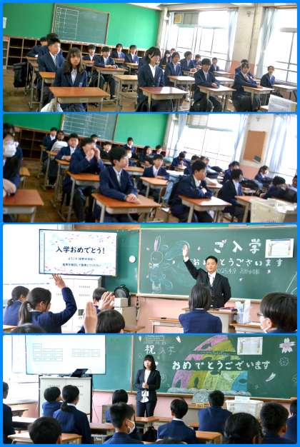 今日は本校76回目の入学式。入学式に先立ち、クラスが発表され、教室で簡単に入学式の流れ等の説明がされました。生徒会本部の皆さんが描いてくれた黒板のメッセージも映えていますね。この後、式場である体育館に入場します。