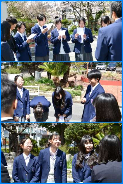 入学式には在校生を代表して、1組のみなさんと生徒会本部の皆さんが参列してくれました。ありがとうございました。そして、お疲れ様でした。