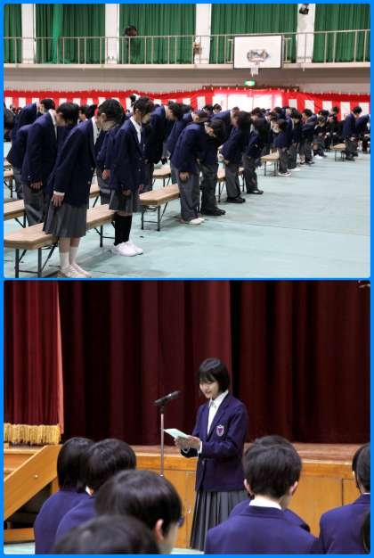 本日、新入生59名を迎え、入学式を執り行いました。中学生としての第一歩を踏み出した新入生のみなさん、「応援される人」でいて下さい。自分のもつ可能性を潰されないようにし、他者のもつ可能性をつぶさない人であって下さい。自分を含む誰もが才能を最大限に発揮できる高野中にして欲しいと思います。高野中学校での3年間が夢が芽生え、夢が広がる3年間になることを祈っています。