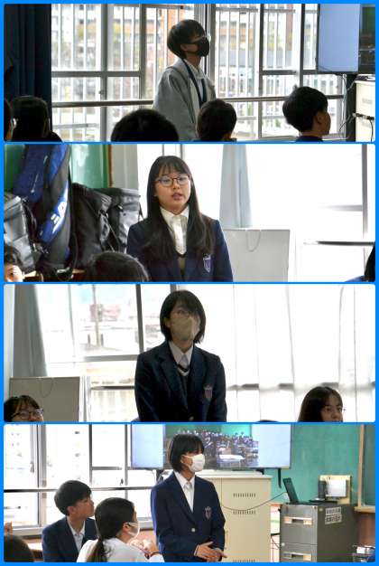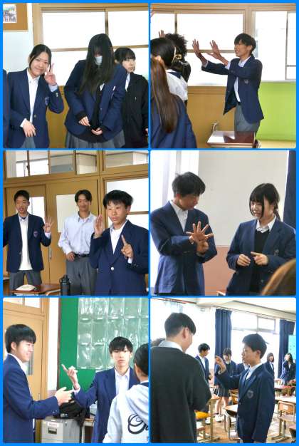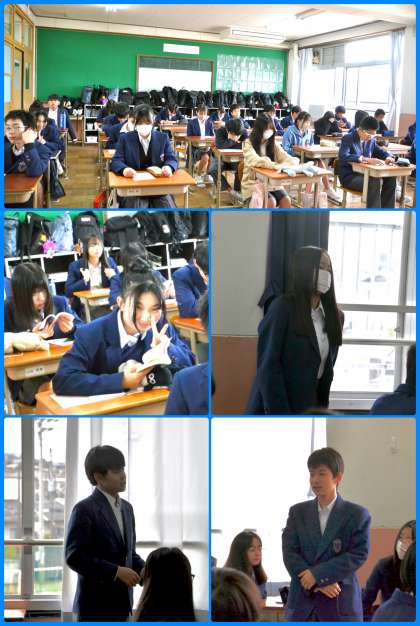 3組は自己紹介、4組は言葉を介さずに誕生日順に並んで円を作る、言わば、人間関係作りのアクティビティが行われていました。2組は朝読書時の写真です。