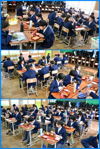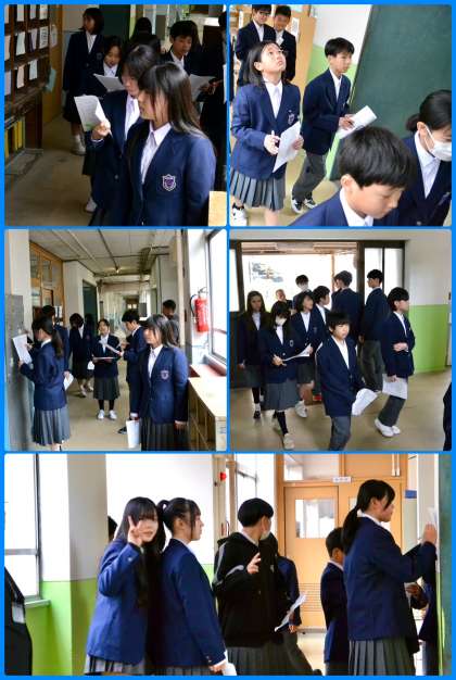 今日は午後の授業はありませんが、慣れない中学校での半日でしたので疲れたのではないでしょうか。明日から、6時間が基本となります。部活動体験も始まりますので、体験をする場合は必要に応じて、体操服やシューズ等を持参して下さい。まずは初日、お疲れ様でした。